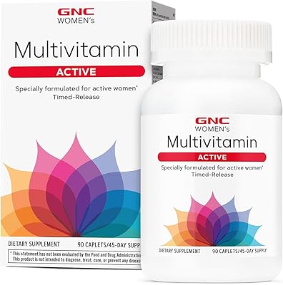 GNC Women’s Active Multivitamin Caplets, Clinically Proven, Complete Nutrition, Exercise Recovery, Energy Production, Bone Health, Beauty, Immune, Iron, Zinc, Biotin, 90 Capsules